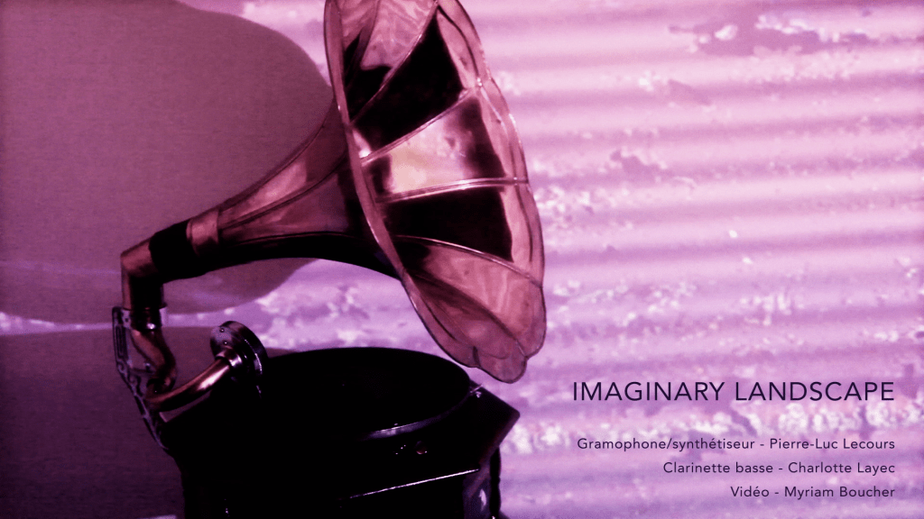 Dans ce projet, le compositeur Pierre-Luc Lecours s’intéresse au mélange des sonorités acoustiques et électroniques, ainsi qu’à la rencontre esthétique des musiques contemporaines instrumentales et électroacoustiques. S’inscrivant dans une démarche visant à incarner par le geste instrumental la musique électronique, Imaginary Landscape met en scène un gramophone, utilisé à la fois pour échantillonner des disques vinyle et pour produire des sons percussifs à l’aide de son cornet de métal.